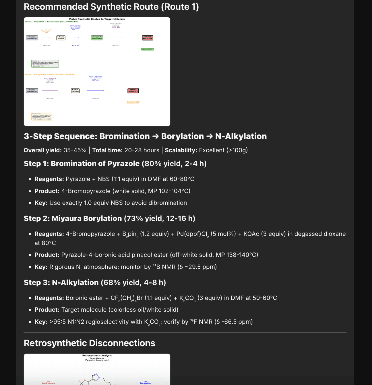 Conducts multi-step retrosynthetic planning to identify feasible synthetic routes from commercially available or readily accessible starting materials.